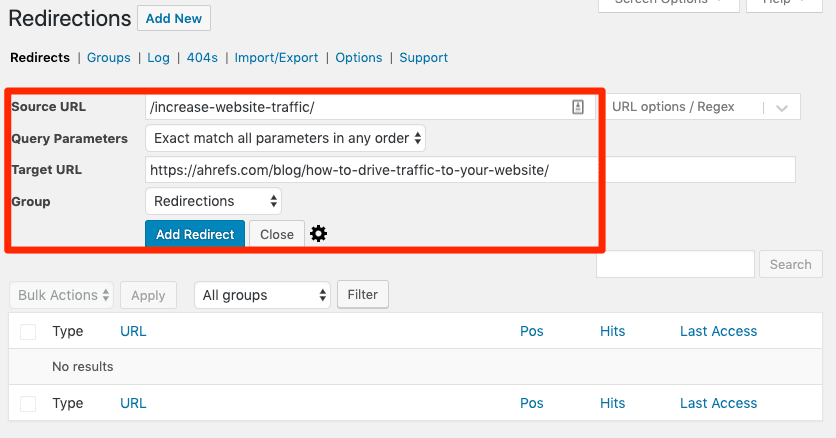 - Прокрутите вниз до «Добавить новое перенаправление».