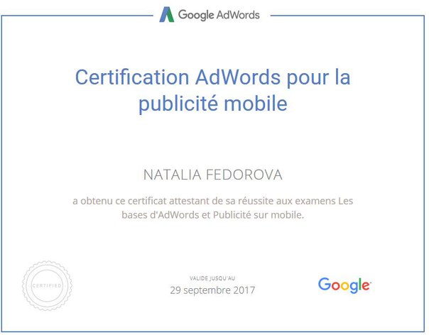 Сертификат от Google AdWords бессрочный?Нет, любой сертификат нужно подтверждать через год — и проходить процедуру сдачи экзамена заново.