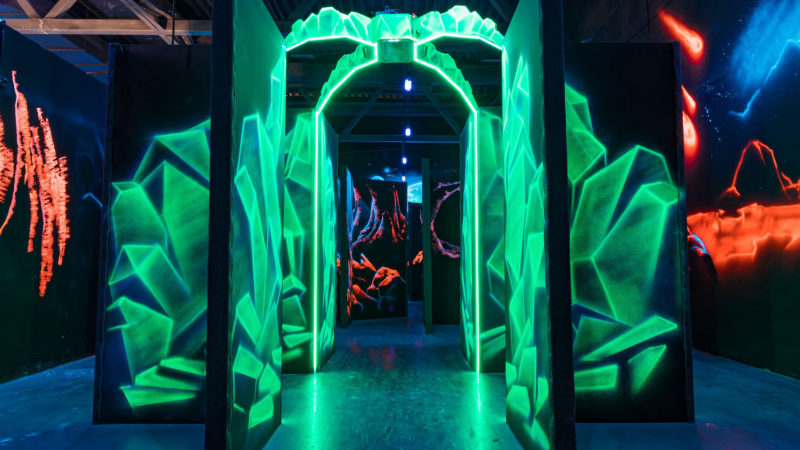 Хотите сэкономить – сделайте несколько трафаретов и с помощью флуоресцентной краски нанесите рисунки на стены. Можно также использовать дополнительное освещение в стратегически важных местах.