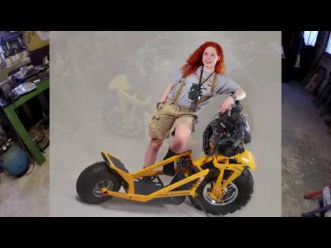 из стали и алюминия с шинами шириной 9 дюймов. - Имеет заднюю и переднюю подвеску с двумя тормозами и регулируемое сиденье.