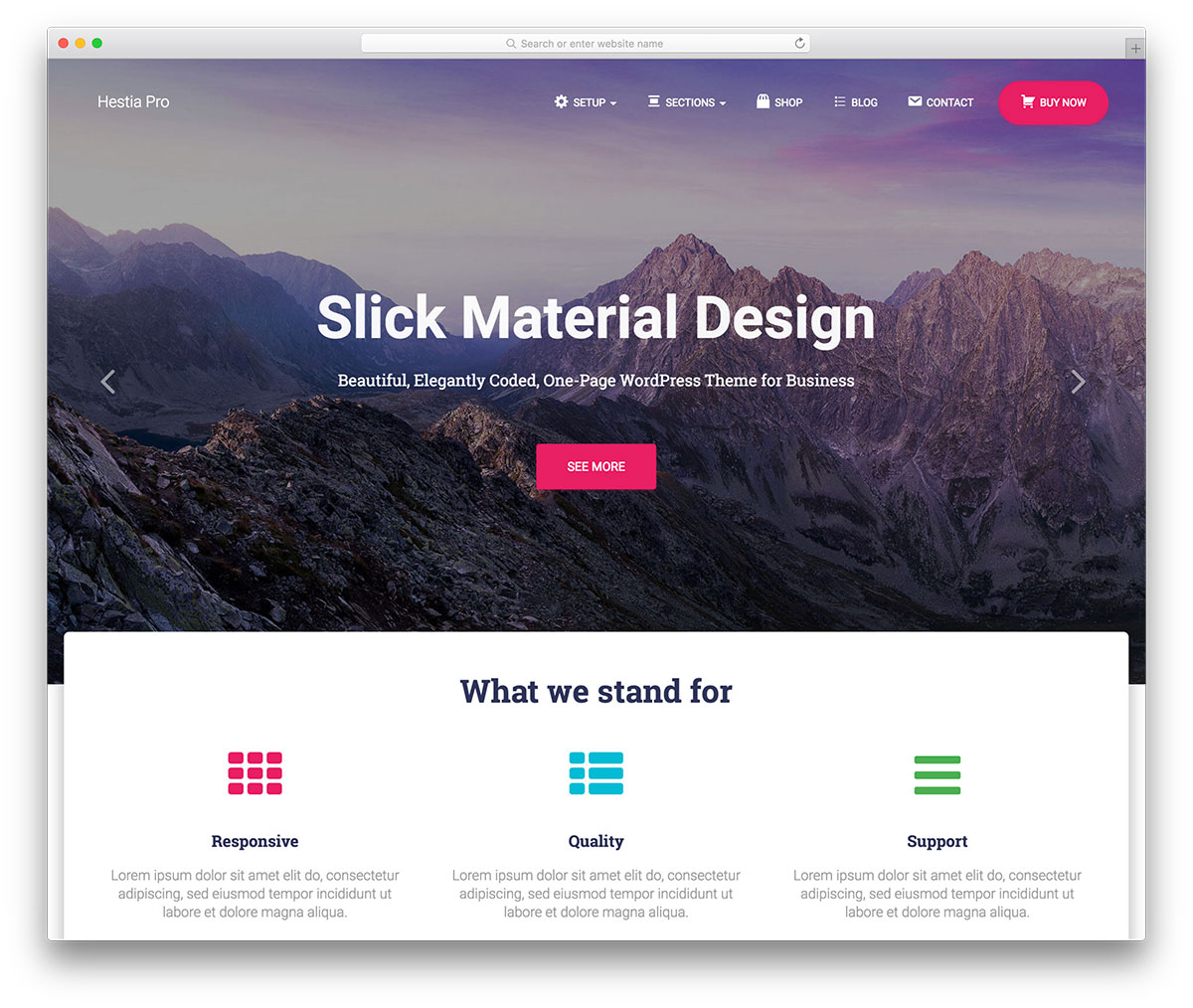 Первой в нашем списке является Hestia, тема общего назначения. Созданный ThemeIsle, он основан на философии материального дизайна Google.