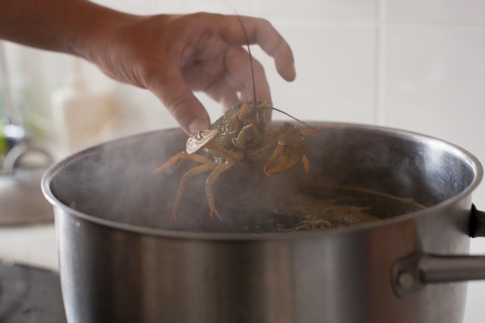 «Наши раки готовятся в очень чистой среде. Из пруда переходим в перерабатывающий бассейн, где вскрываем брюхо раков, чтобы извлечь отходы.
