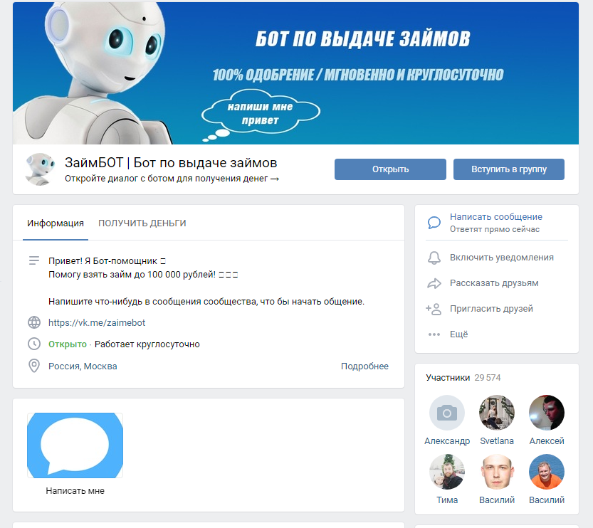 Страницы бота являются общедоступными для компании, поэтому любой член сообщества Workplace может видеть бота, отмечать его и отправлять ему сообщения.
