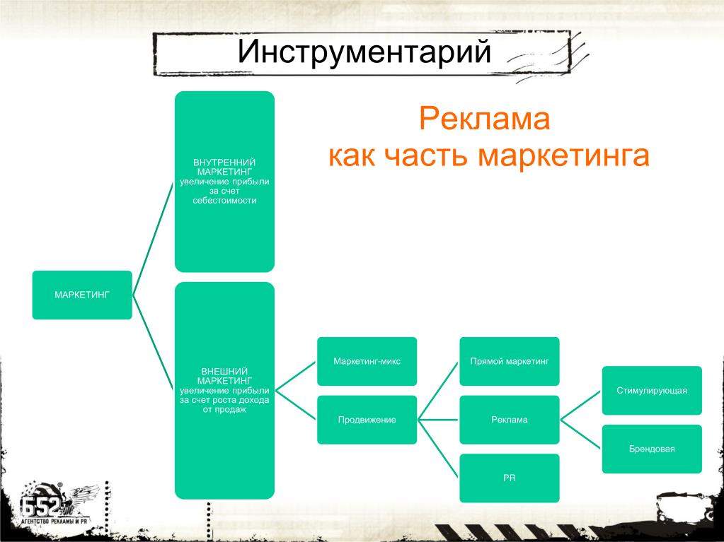 , ΡΠΊΠ°ΠΆΠ΅ΠΌ, ΡΡΠΎ ΠΌΠ°ΡΠΊΠ΅ΡΠΈΠ½Π³ β ΡΡΠΎ ΠΎΠ±ΡΠΈΠΉ ΡΠ΅ΡΠΌΠΈΠ½, ΡΠ²ΡΠ·Π°Π½Π½ΡΠΉ Ρ ΠΏΠΎΠ·ΠΈΡΠΈΠΎΠ½ΠΈΡΠΎΠ²Π°Π½ΠΈΠ΅ΠΌ Π±ΡΠ΅Π½Π΄Π° ΠΈ ΠΏΠΎΠ²ΡΡΠ΅Π½ΠΈΠ΅ΠΌ Π΅Π³ΠΎ ΡΠ·Π½Π°Π²Π°Π΅ΠΌΠΎΡΡΠΈ, Π² ΡΠΎ Π²ΡΠ΅ΠΌΡ ΠΊΠ°ΠΊ ΡΠ΅ΠΊΠ»Π°ΠΌΠ° β Π»ΠΈΡΡ ΠΎΠ΄Π½Π° ΠΈΠ· ΡΠ°ΠΊΡΠΈΠΊ, ΠΈΡΠΏΠΎΠ»ΡΠ·ΡΠ΅ΠΌΡΡ