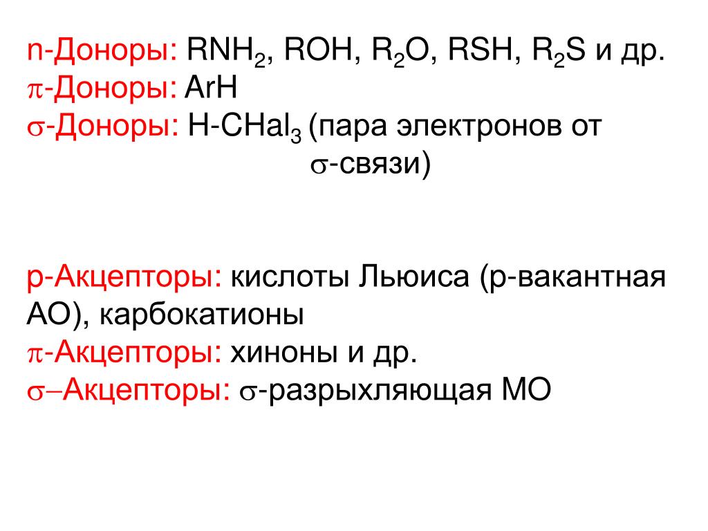 H3B ← NH3; H3B ← N(CH3)2; F3B ←NH3; F3B ←O(CH3)2; Cl2Be ←O(C2H5)2; Cl3Al ←NH3; и др.
