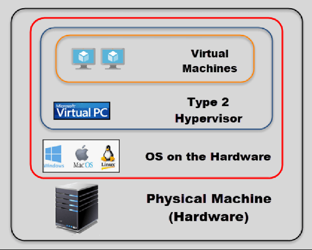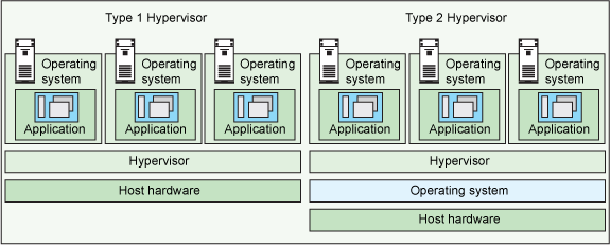 - Гипервизор типа 2: гипервизоры работают в операционной системе хоста, которая предоставляет услуги виртуализации, такие как поддержка устройств ввода-вывода и управление памятью.