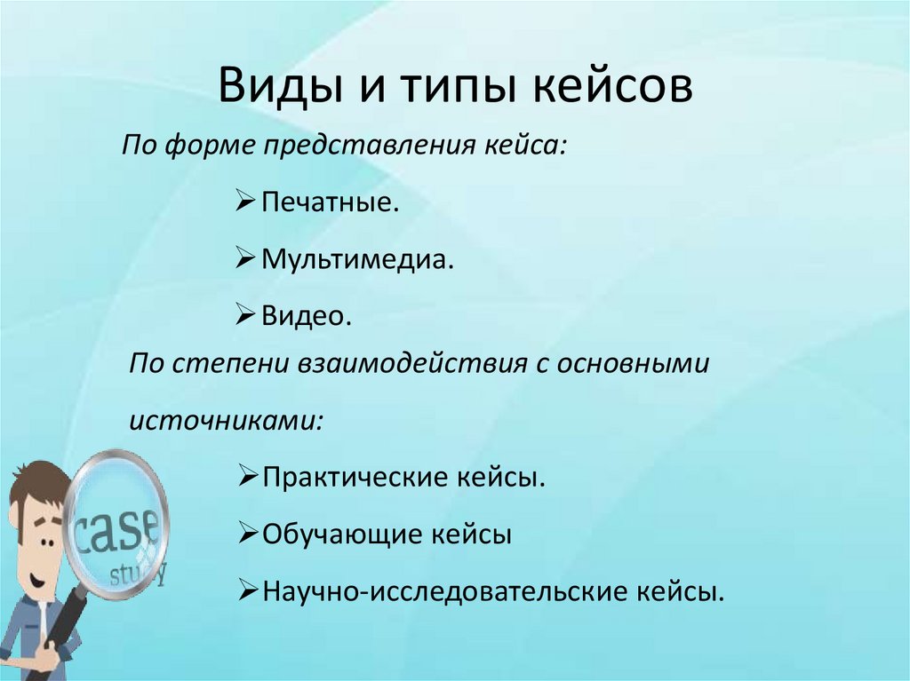 Спектр применения кейс-методик достаточно широк. Вам могут встретиться: