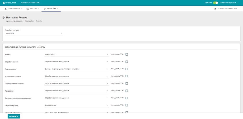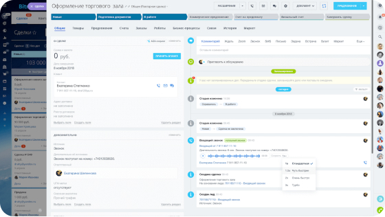 Для просмотра товарных остатков и их бронирования, выставления оплаты, оформления доставки и других действий не нужно покидать CRM.