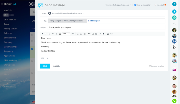 не покидая CRM