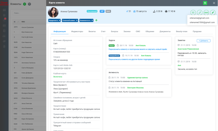 Вся информация о клиенте будет в едином профиле