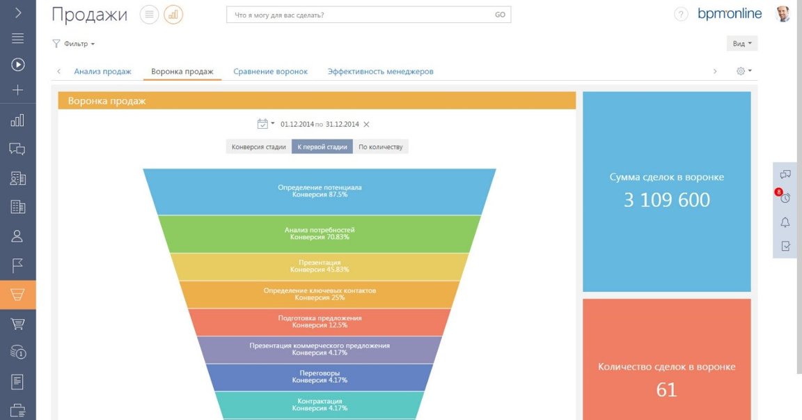 Выявляйте неэффективных продавцов. Проводите RFM-анализ и смотрите воронку продаж. Делайте ABC/XYZ-анализ, чтобы наглядно видеть продукты, которые продаются лучше всего и многое другое.