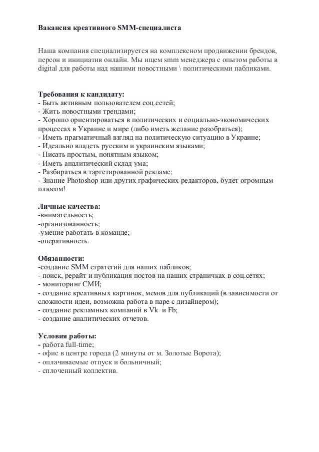 Как написать описание работы менеджера по социальным сетям