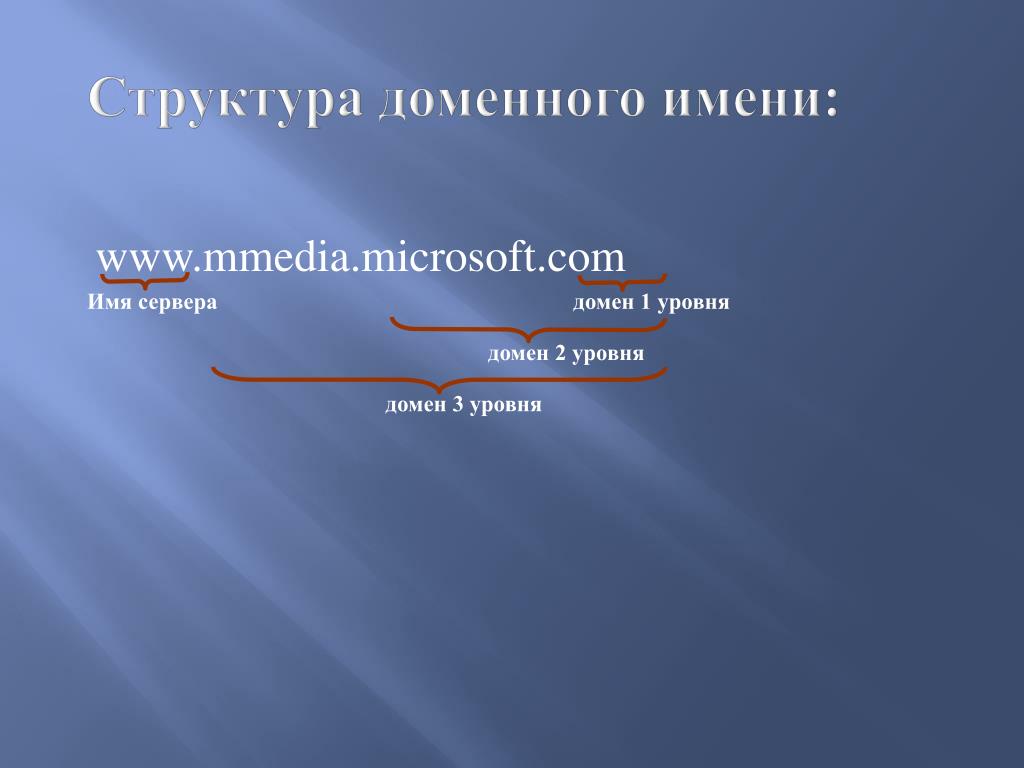 Различают разные адреса сайтов, однако применяют преимущественно первый, второй и третий уровни доменных имен. Первый находится с правой стороны от точки, к примеру, «. RU», «. COM», «.NET», «.DE», «.UA» и прочие. Физическое лицо не может стать обладателем такого адреса для сайта, ими владеют регистраторы верхнего уровня (регистратуры).