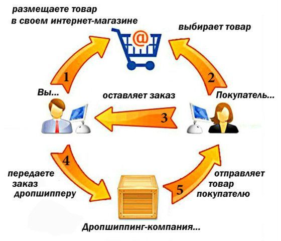 Согласно этой модели, Вы находите клиента. Клиент оплачивает деньги за товар Вам. Далее Вы закупаете этот товар у своего поставщика. А поставщик отправляет заказ не Вам, а напрямую Вашему клиенту. Иными словами, Вы связываете покупателя с поставщиком, и при этом всё их взаимодействие завязано на Вас и проходит через Вас.