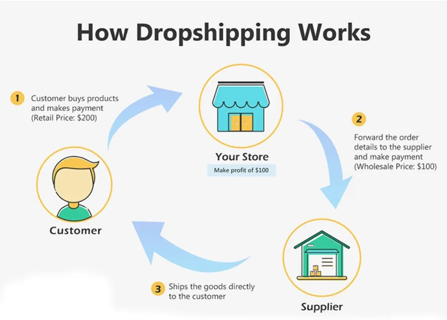 Рабочий процесс дропшиппинга довольно прост. Он включает в себя 3 простых шага: