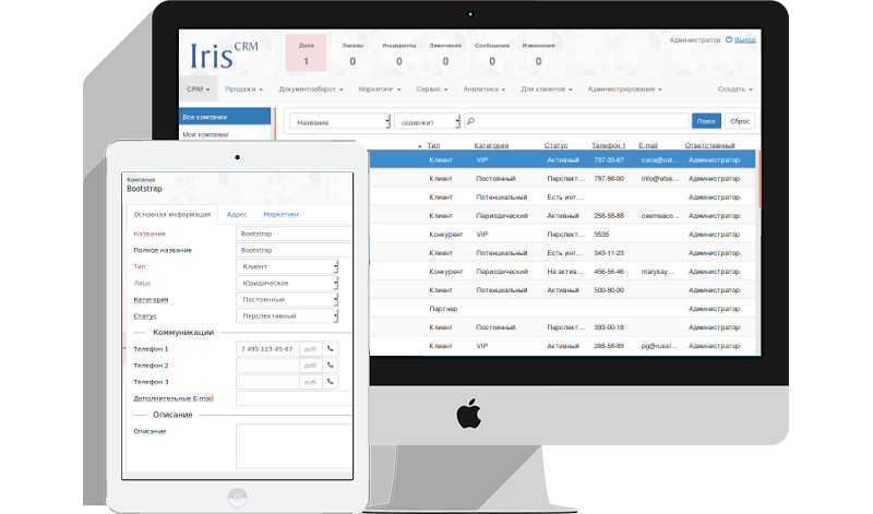Дополнительно разрабатывать и поддерживать мобильное приложение трудоемко. К тому же это лишние расходы. Поэтому мы решили делать адаптивный дизайн. К CRM будет доступ с компьютеров, телефонов и планшетов.
