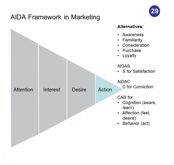 AIDA ΠΈΡΠΏΠΎΠ»ΡΠ·ΡΠ΅ΡΡΡ Π²ΠΎ Π²ΡΠ΅Ρ ΡΠΈΠΏΠ°Ρ ΠΌΠ°ΡΠΊΠ΅ΡΠΈΠ½Π³ΠΎΠ²ΡΡ ΠΈ ΡΠ΅ΠΊΠ»Π°ΠΌΠ½ΡΡ ΠΌΠ°ΡΠ΅ΡΠΈΠ°Π»ΠΎΠ². ΠΠ½ ΡΡΠ΅Π·Π²ΡΡΠ°ΠΉΠ½ΠΎ ΡΡΡΠ΅ΠΊΡΠΈΠ²Π΅Π½ ΠΈ ΠΈΡΠΏΠΎΠ»ΡΠ·ΡΠ΅ΡΡΡ ΡΠΆΠ΅ Π±ΠΎΠ»Π΅Π΅ Π²Π΅ΠΊΠ°. Π₯ΠΎΡΡ ΠΌΠ½ΠΎΠ³ΠΈΠ΅ Π²Π΅ΡΠΈ Π½Π΅ ΠΌΠΎΠ³ΡΡ ΡΠ°Π·Π²ΠΈΠ²Π°ΡΡΡΡ Π²ΠΌΠ΅ΡΡΠ΅ Ρ ΠΌΠ΅Π½ΡΡΡΠΈΠΌΡΡ ΠΌΠ΅Π΄ΠΈΠ°Π»Π°Π½Π΄ΡΠ°ΡΡΠΎΠΌ, AIDA ΡΠ΅Π³ΠΎΠ΄Π½Ρ ΡΠ°ΠΊ ΠΆΠ΅ Π°ΠΊΡΡΠ°Π»ΡΠ½Π°, ΠΊΠ°ΠΊ ΠΈ 100 Π»Π΅Ρ Π½Π°Π·Π°Π΄.
