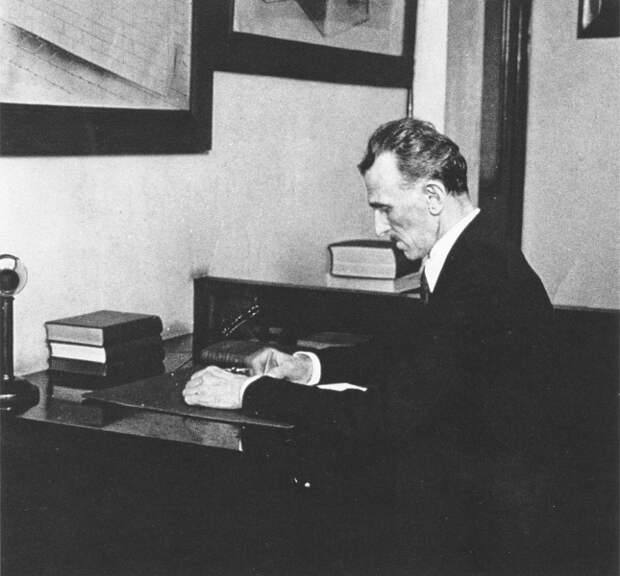 Тесла работает в своем кабинете в 8 West 40th Street. 1916 году