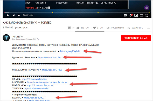 ВАЖНО: Убедитесь, что во всех ваших ссылках в описании есть префикс http://, в противном случае ссылки не будут активны и зритель просто-напросто не сможет по ним перейти на желаемый ресурс.