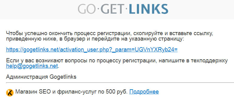 Далее переходим по ссылке в письме для подтверждения регистрации.