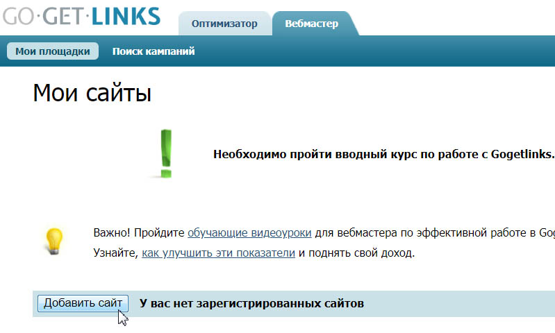 Регистрация закончена, теперь можно переходить к работе с биржей, но предварительно нужно положить на счет немного денег, иначе ссылки покупать будет не на что.