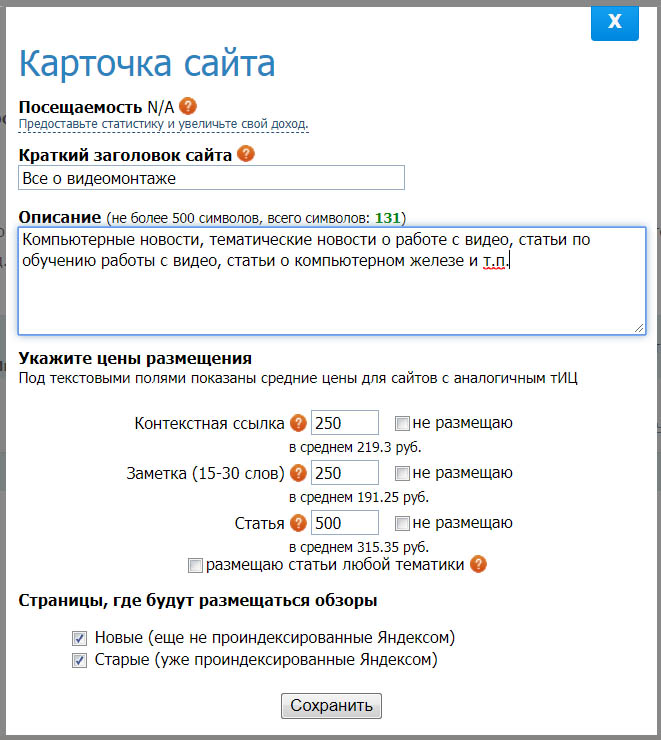 В блоке «На каких страницах вы готовы разместить обзор» также можно (и даже нужно) ввести комментарий для владельцев сайтов, которые будут размещать вашу ссылку. В комментарии укажите свои основные требования к размещению ссылки, например: