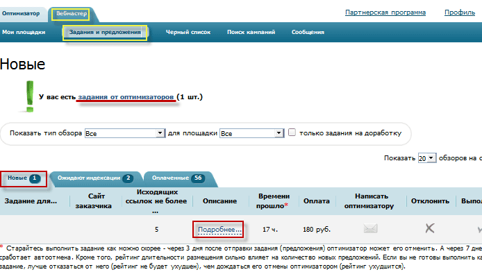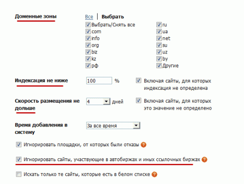 Меня это параметр мало волнует поэтому я всегда оставляю чекбокс не отмеченным. Если сроки выполнения задания вебмастером затянуться, вы всегда сможете их отменить в ручном режиме спустя трое суток после отправки предложения сайту донору. - Без сайтов от которых были отказы — имеется ввиду не показывать сайты, которым вы уже отправляли свои предложения, но они были отклонены. Отметка ставиться на ваше усмотрение и на качество донора не влияет.