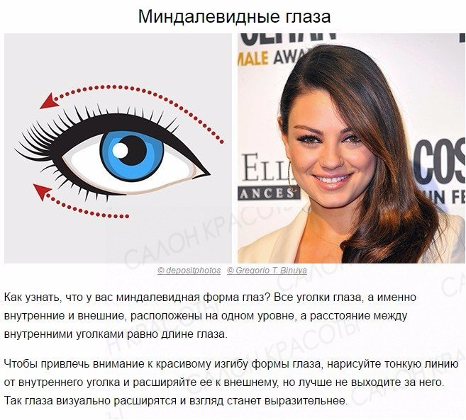 В представлении большинства людей нашей культуры именно миндалевидные глаза являются наиболее красивыми. И это легко объяснимо: классическая форма глаз для нашего народа — именно миндалевидная. Таким образом, привычное стало эталоном и идеалом.