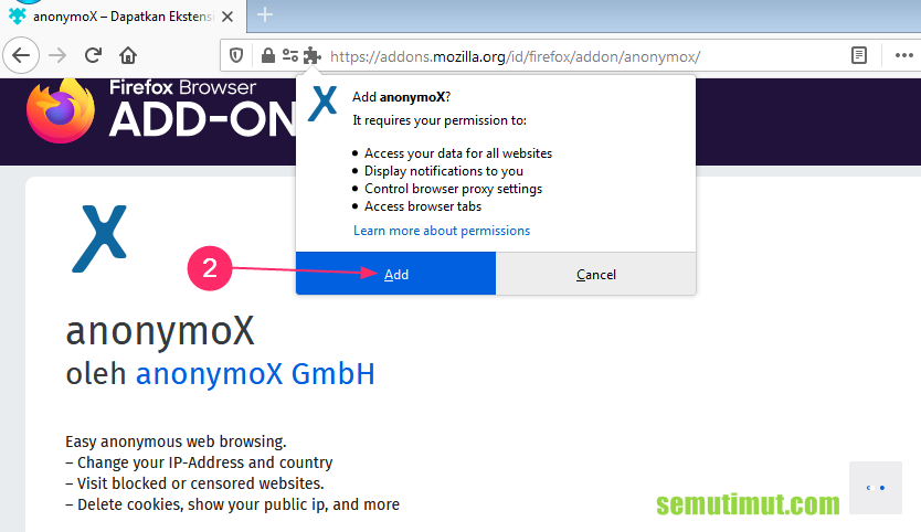 Нажмите «Добавить», чтобы установить расширение. - После установки расширения Firefox даст вам возможность включить его в режиме приватного просмотра.