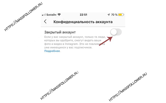 - Поставьте галочку напротив пункта «Закрытый аккаунт».
