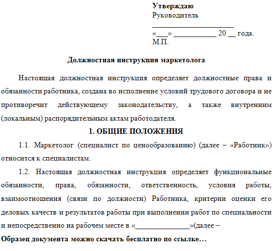 Вы можете скачать должностную инструкцию Интернет-маркетолога бесплатно. Должностные обязанности Интернет-маркетолога