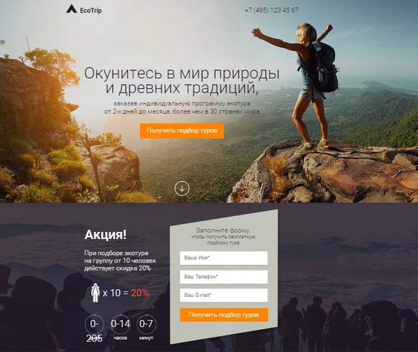 Представляем макет одностраничного сайта с использованием последнего инструмента, плюс «эффект срочности».