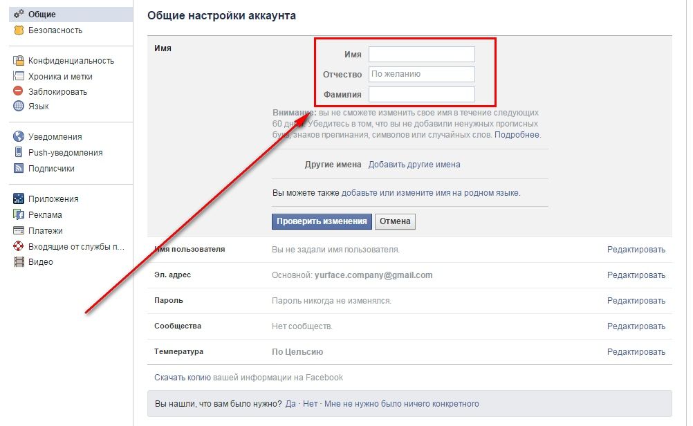 Как изменить свое имя на Facebook?