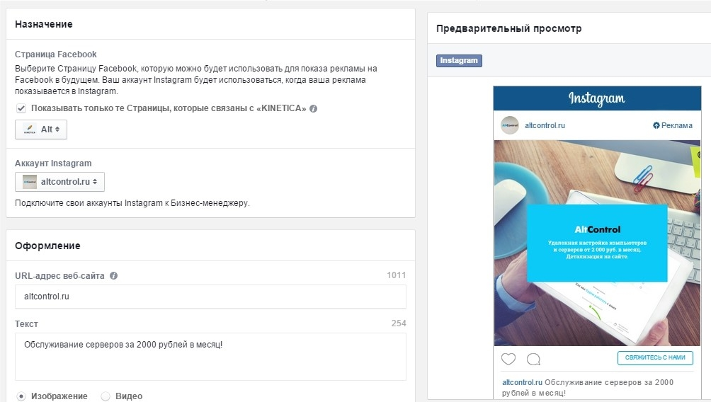 Π‘ ΠΏΠΎΠΌΠΎΡΡΡ ΡΡΠΎΠΉ ΠΎΠΏΡΠΈΠΈ Π΄Π»Ρ Π²Π°ΡΠ΅ΠΉ ΡΠ΅ΠΊΠ»Π°ΠΌΡ ΠΌΠΎΠΆΠ½ΠΎ Π²ΡΠ±ΡΠ°ΡΡ Π²ΡΠ΅, ΠΎΡ ΡΠ°Π·Π³ΠΎΠ²ΠΎΡΠΎΠ² Π² Facebook Messenger Π΄ΠΎ Π½Π°ΡΠΈΠ²Π½ΡΡ ΠΈ Π±Π°Π½Π½Π΅ΡΠ½ΡΡ ΠΌΠ΅ΡΡ Π½Π° Facebook.ΠΠΎΡΠΊΠΎΠ»ΡΠΊΡ ΡΡΠ° ΡΡΠ°ΡΡΡ ΠΏΠΎΡΠ²ΡΡΠ΅Π½Π° ΡΠ΅ΠΊΠ»Π°ΠΌΠ΅ Π² Instagram, ΠΌΡ ΠΏΡΠΎΡΡΠΎ ΡΠ°Π·ΠΌΠ΅ΡΡΠΈΠΌ ΡΠ΅ΠΊΠ»Π°ΠΌΡ Π² Π»Π΅Π½ΡΠ°Ρ ΠΈ ββΠΈΡΡΠΎΡΠΈΡΡ ΠΏΠΎΠ»ΡΠ·ΠΎΠ²Π°ΡΠ΅Π»Π΅ΠΉ.