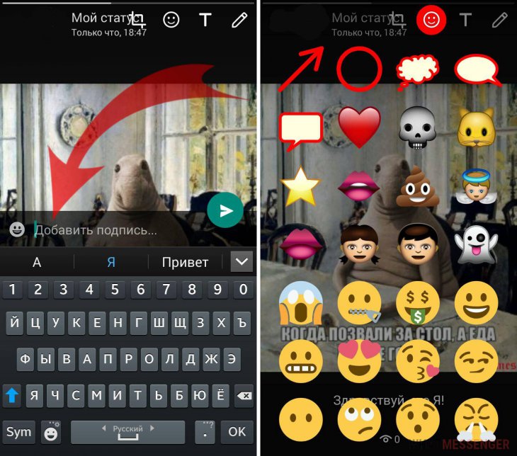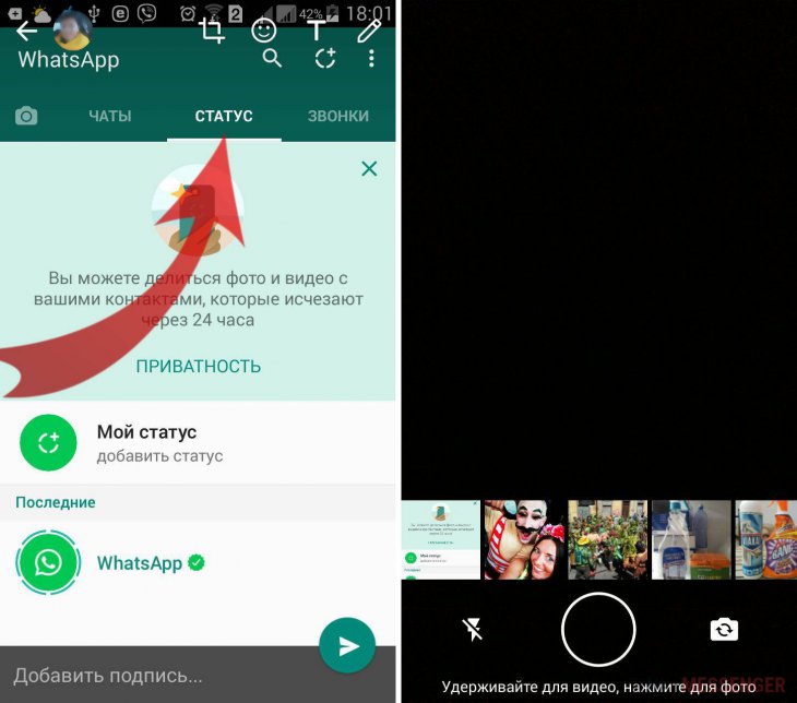 Если Вы не знаете как поменять статус в WhatsApp, воспользуйтесь нашими подсказками. В зависимости от операционной системы вашего смартфона выберите подходящею инструкцию для Android или iOS.В новой версии Ватсапа подход к статусам кардинально изменился, вместо обычного текста используются фото, видео из галереи или GIF-анимация, которые впрочем тоже можно оригинально подписать. Но старый статусы вернули спустя какое время, но переименовали их в СВЕДЕНИЯ.