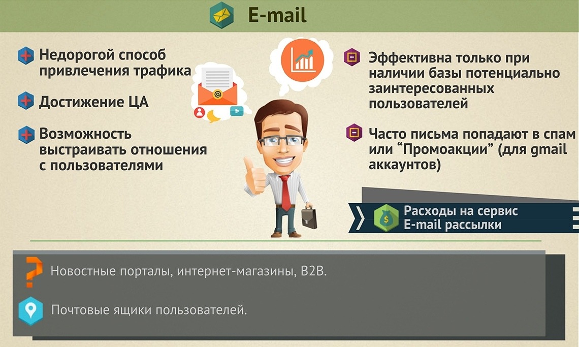 За что платим? Если вы готовы задействовать собственные ресурсы, то можете получить этот трафик бесплатно. За использование некоторых инструментов придётся заплатить, но немного: речь в том числе о массовой отправке e-mail или подключении систем аналитики, например, для сбора позиций сайта в органической выдаче. О возможных сопутствующих расходах мы расскажем ниже.