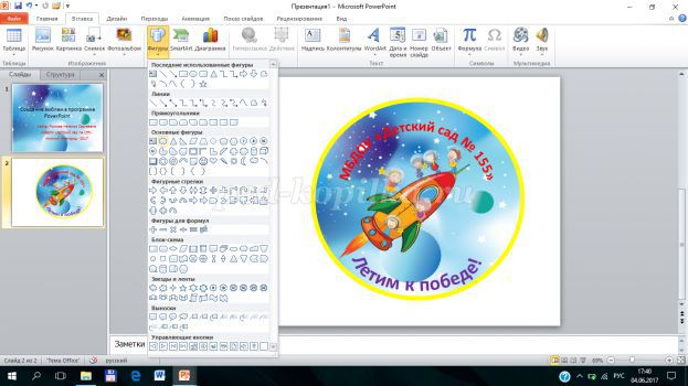 1. Вставьте фигуру, которая будет использоваться в качестве фона вашего логотипа.