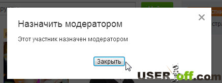 Наведите курсор мыши на фотографию нужного человека, и в открывшимся списке выберите пункт «назначить модератором».