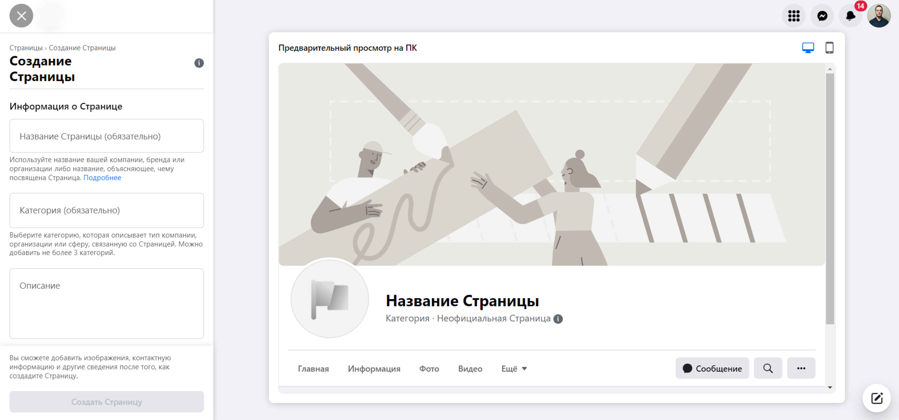 Настроить страницу относительно просто, и пошаговое руководство на Facebook проведет вас через весь процесс. Первым шагом будет выбор категории для вашей страницы, что важно для того, чтобы помочь людям найти вашу страницу на Facebook, а также повысить видимость страницы во внешнем поиске.