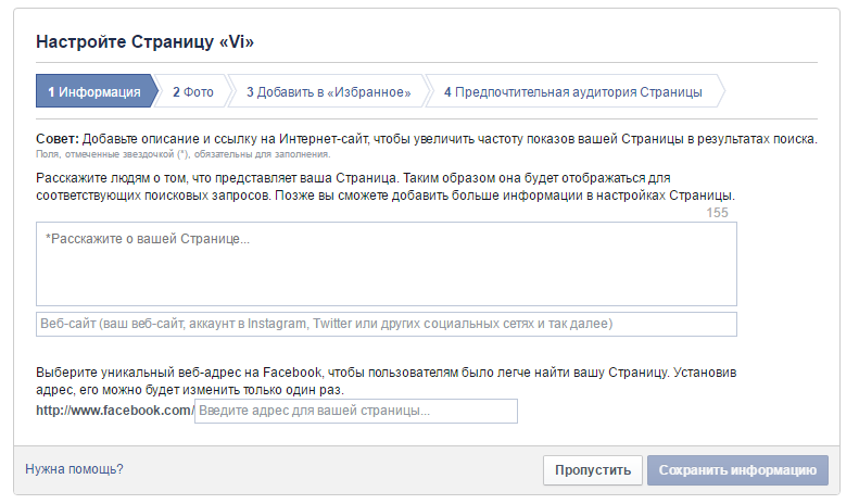 Не забывайте следовать рекомендациям Facebook по имени пользователя при выборе пользовательского URL-адреса.