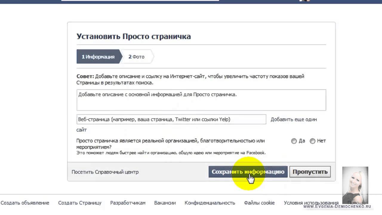 В следующем окне заполните все запрашиваемые поля. Параллельно Вы можете смотреть, как бизнес страница в фейсбук будет выглядеть.