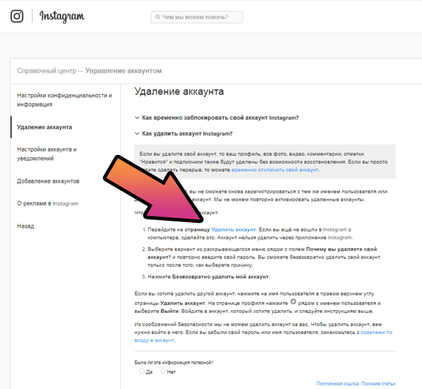 Удалить ваш аккаунт в Instagram навсегда с веб-сайта