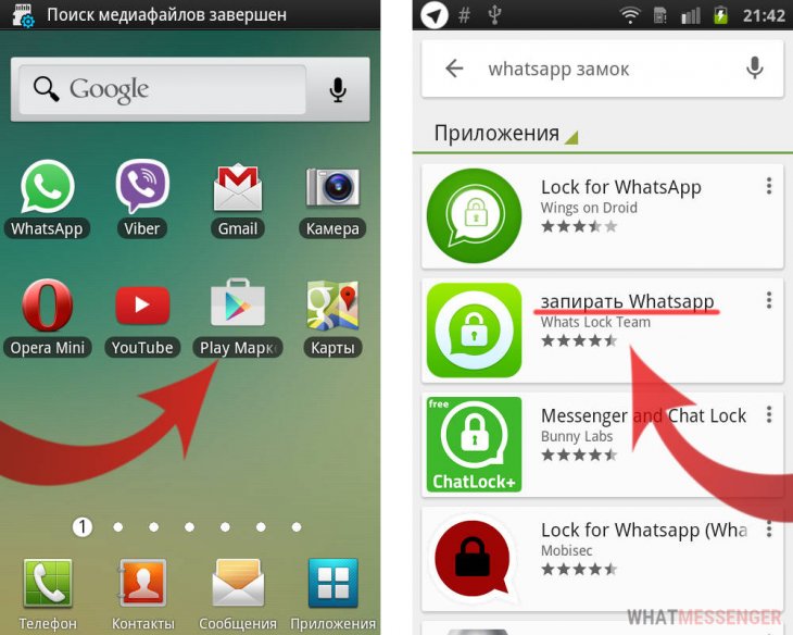 - Нас переводят в GooglePlay. Скачиваем через него WhatsApp и проходим регистрацию.