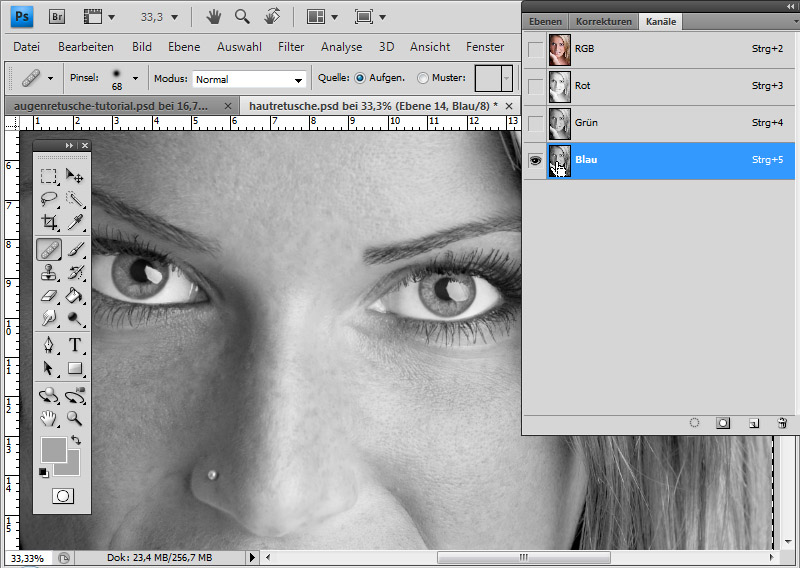 После того, как кожа проработана, переходим на слой с дубликатом изображения и ещё раз применяем к нему корректирующий слой