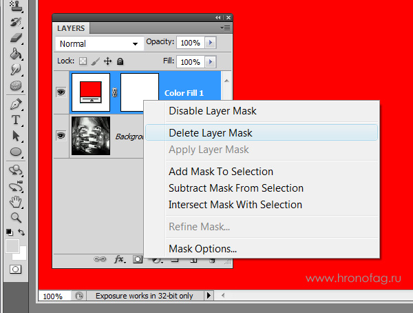 Корректировка будет видна везде, где маска слоя белая, но будет скрыта из поля зрения, если маска слоя черная, позволяя просвечивать исходный цвет. В следующих шагах вы добавите черный цвет к маске слоя, вернув немного цвета части изображения.