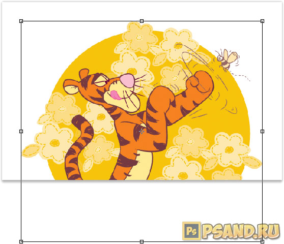 - Вы увидите, что слой обведен рамкой с маркерами. Они-то и помогут нам изменить его видимые размеры.