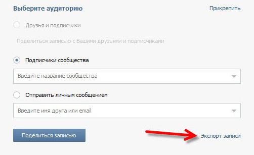 - Шаг второй. После нажатия на этот маленький рупор появится меню под названием «Отправка записи». Чтобы разместить чужой пост на своей стене, необходимо просто нажать на надпись «Друзья и подписчики» (выделен красным цветом).