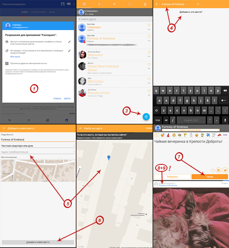 - Если у вас еще нет аккаунта в Форсквер и/или Swarm, их нужно завести. Делается это буквально в один клик, с помощью аккаунта в GooglePlus.