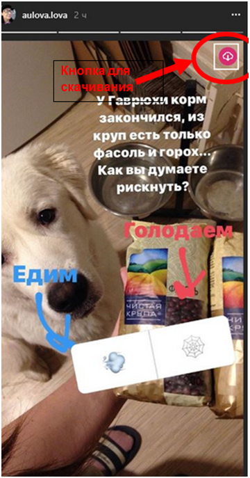 - Откройте нужную и тапните по значку загрузки, чтобы скачать эфир из инстаграма на компьютер.