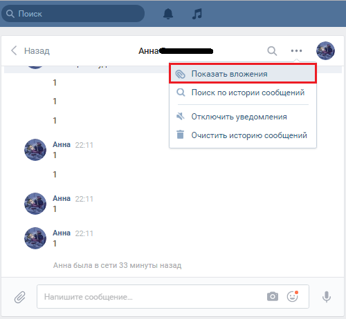 В разговоре можно выполнять приведенные ниже действия с вложениями.